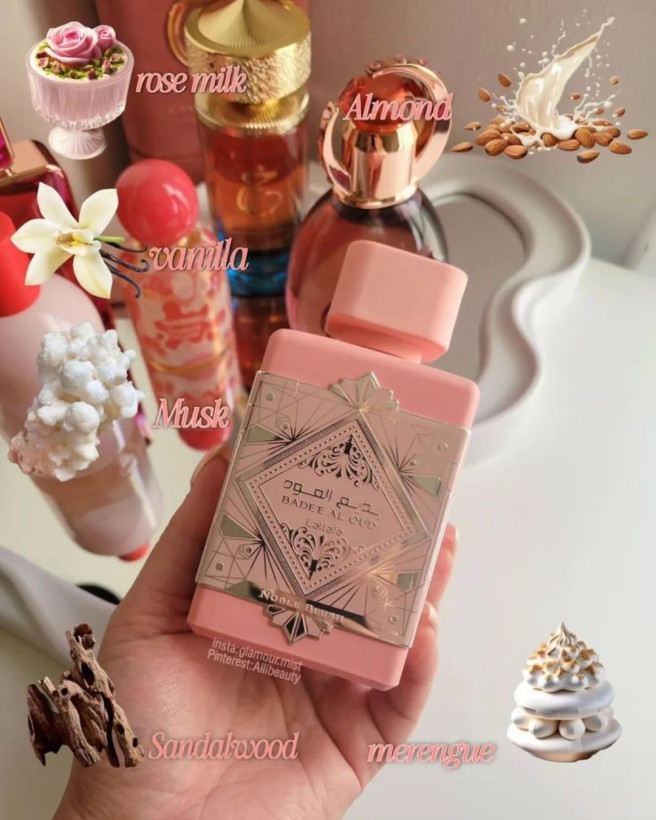 @perfume.for2 ادکلن بدیع العود صورتی حجم : 100 میلی لیتر مناسب برای :خانم ها نوع رایحه : ملایم و شیرین گروه بویایی : گلی ، میوه ای ماندگاری : خوب برند لطافه ت عطر ادکلن زنانه لطافه بدیع العود نوبل بلاش Lattafa Badee Al Oud Noble Blush یک رایحه گلی میوه ای و گلدار مخصوص بانوان است که در سال 2024 به بازار عرضه شد. این عطر با الهام گرفت از عطر سازی مدرن ، ترکیبی از مواد اولیه باکیفیت بکار برده تا ماندگاری و تاثیر گذاری بالایی داشته باشد. بسته بندی لوکس و رایحه ی جذاب ، عطر بدیع العود صورتی رابه گزینه ای بی نظیر برای بانوانی تبدیل کرده که به دنبال تجربه ای جدید و خاص هستند. ویژگی ها : رایحه اولیه : رز ، شیر رایحه میانی : مرنگ ، بادام رایحه پایه : چوب صندل ، وانیل ، مشک جهت ثبت و واتساپ 09354126093 #ادکلن#عطرزنانه